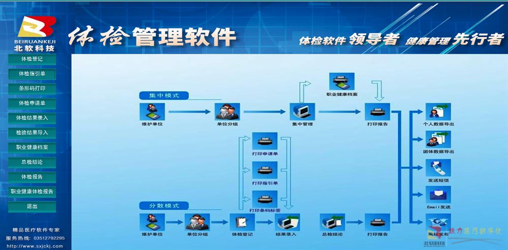 維護(hù)單位 單位分組 體檢登記 批量登記 體檢結(jié)果錄入 體檢集中管理 總檢結(jié)論 體檢報(bào)告 健康檔案錄入 職業(yè)健康體檢報(bào)告 健康證辦理 職業(yè)健康體檢報(bào)告打印