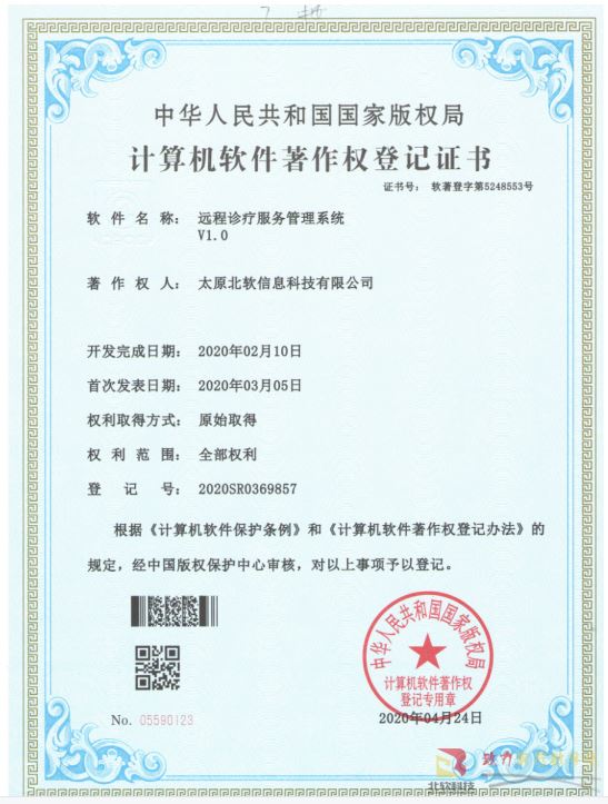 熱烈祝賀公司獲得《遠(yuǎn)程診療服務(wù)管理系統(tǒng)》軟件著作權(quán)!
