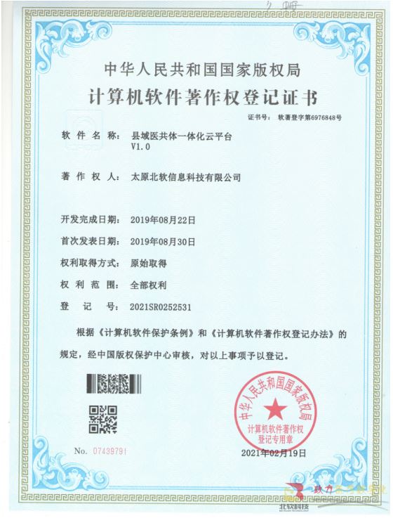 熱烈祝賀公司獲得《縣域醫(yī)共體一體化云平臺》軟件著作權(quán)!